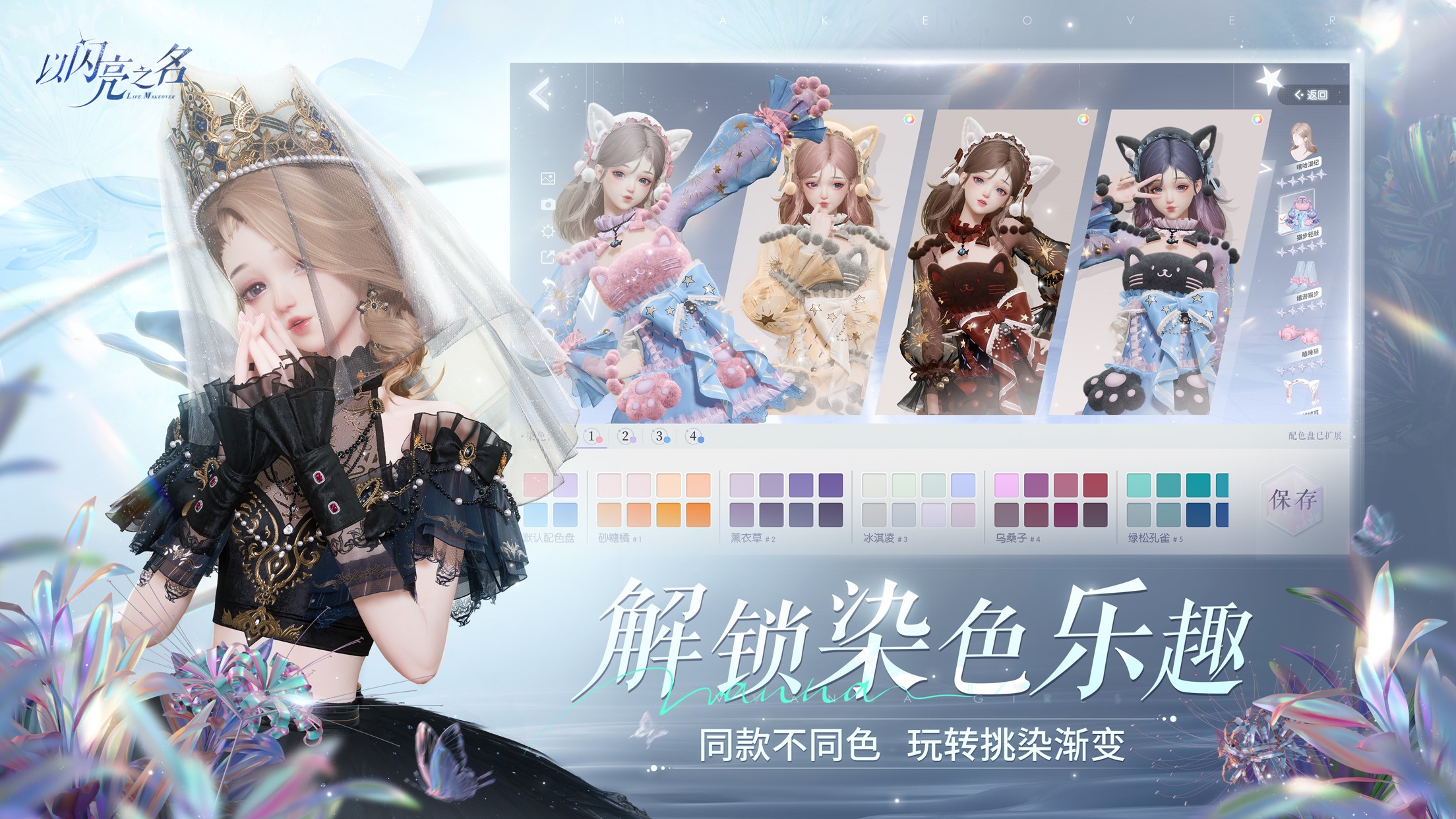 同时《以闪亮之名》高自由度的可玩性还可以在服饰搭配、染色、DIY和家园建造上体验。