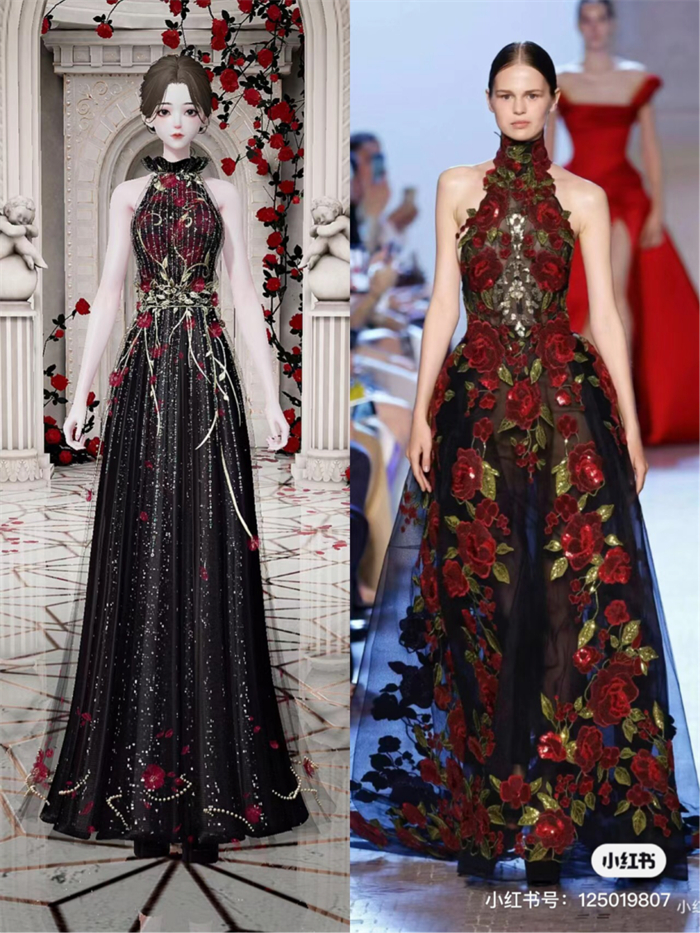 有的玩家则偏爱华丽的秀场高定风格,足不出户就在游戏里搞起了“米兰时装周”。