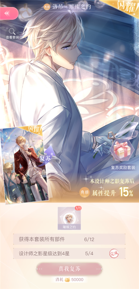 这里给大家解释一下闪暖的复苏机制。需要获得套装的全部部件以及对应的卡(设计师之影)2张后,将卡升级至指定等级才能复苏。