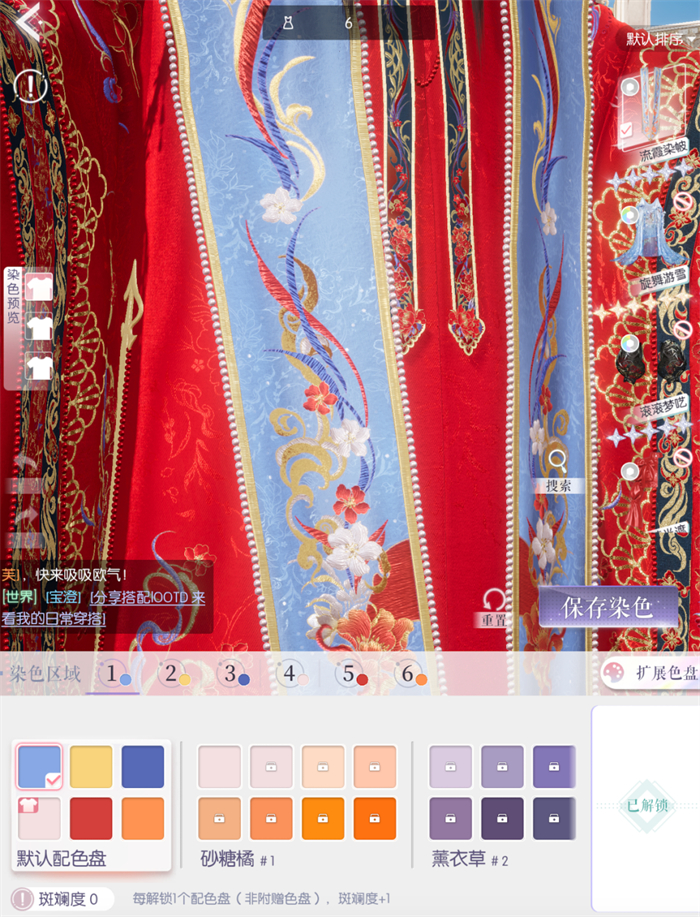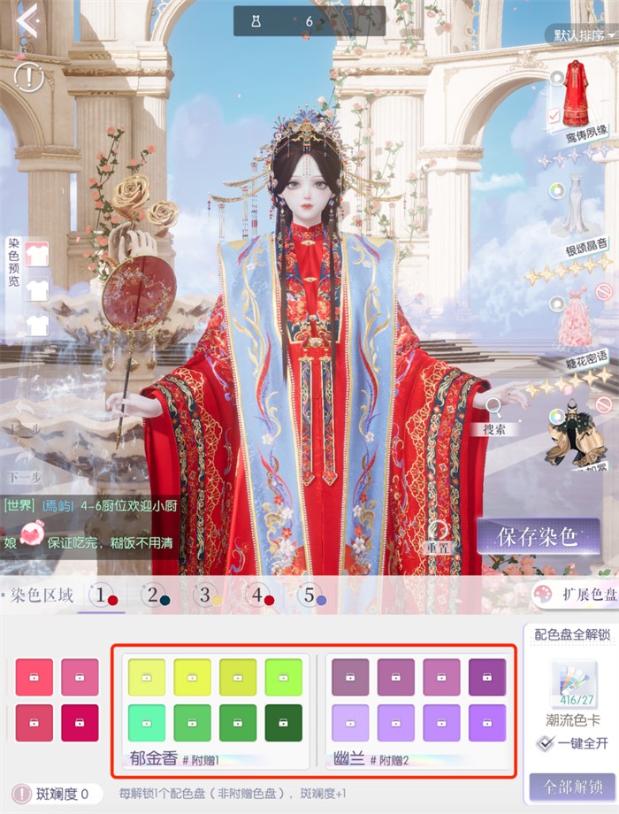 新上线的五星古婚服“鸾俦夙缘”套装,仅一条霞帔就有6个染色分区,细致到刺绣的花和叶都能染不同的颜色,通过染色可以看到许多小细节,再通过不同的颜色搭配呈现不同的风格。