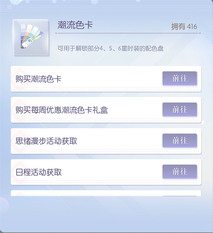 此外,通过主线、心意之期制作的时装,可在日常中消耗体力和挑战次数制作对应色卡,这部分属于完全免费0门槛。