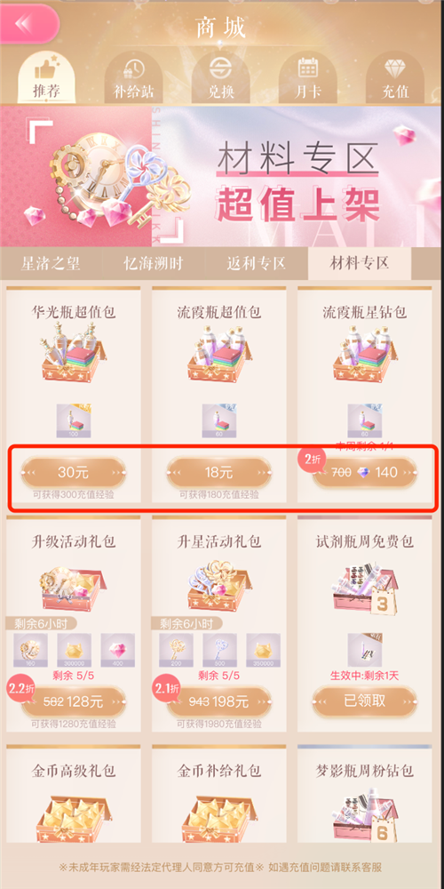 需要注意的是,在达到染色门槛后,解锁色盘仍旧需要额外的道具。普通(同以闪三星)等级时装不可染色,其他可染色时装等级稀有(同以闪四星)、非凡(同以闪五星)、闪耀需要不同的道具来解锁。稀有道具通过钻石购买,非凡道具通过紫钻(点券)购买,闪耀道具通过现金购买,除此之外,只能通过周常商店进行兑换,但数量稀少,一件闪耀时装纯靠游戏行为获取需要两周解锁一个色盘。这对攒钻玩家或者平民玩家,是不友好的。