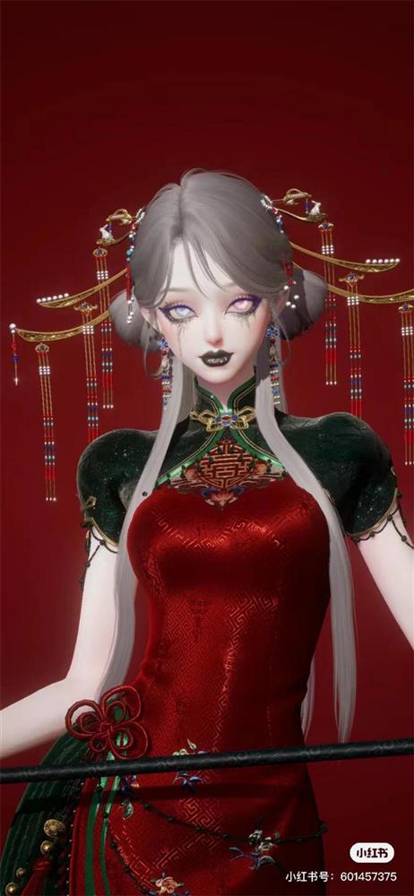 除了这次上线的时装之外,中式恐怖氛围还激起了大家创造的灵感,比如在午夜时分看到这样的场面,幽暗的森林背景搭配暗红的长裙,红色面纱更添诡异之感。