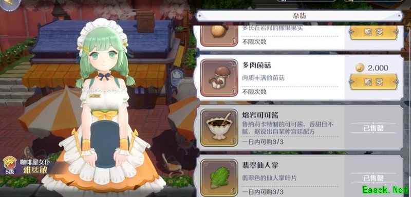 每天购买女仆的四星食材,包括可可酱和仙人掌,直至购满。