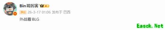 Bin哥也是在赛后再放狠话:外战看BLG!