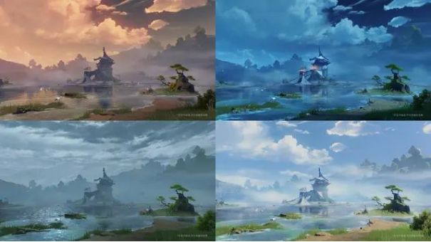 在危险区域(野外、副本等)与安全区域(主城区等)做了氛围上的区分,保留危险区域的厚重感以加强战斗部分的临场感也与整体故事背景更加统一,而尽量让安全区域的氛围更加柔和舒适,以便玩家长时间的游玩体验。