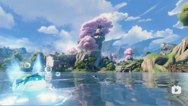 接着,有一个嘟嘟河豚在水中游泳的画面,配合上镜头语言,小编推测大概率玩家在特定的活动中,是可以变成咕咕河豚在水里游泳的,感觉十分有趣。毕竟,咕咕河豚也是鸣潮里面的小可爱一枚呀。