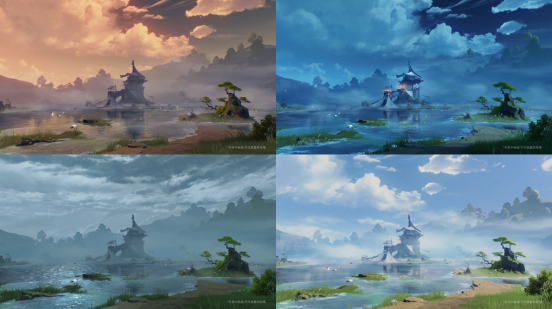 从官方前段时间放出的开发中场景实机展示视频中可以发现,《鸣潮》场景从之前的冷淡变得更加丰富多彩,在保持了原有的偏向写实的风格下,增加各种各样的天气和氛围,从日升到日落的四时变化也更加明显。