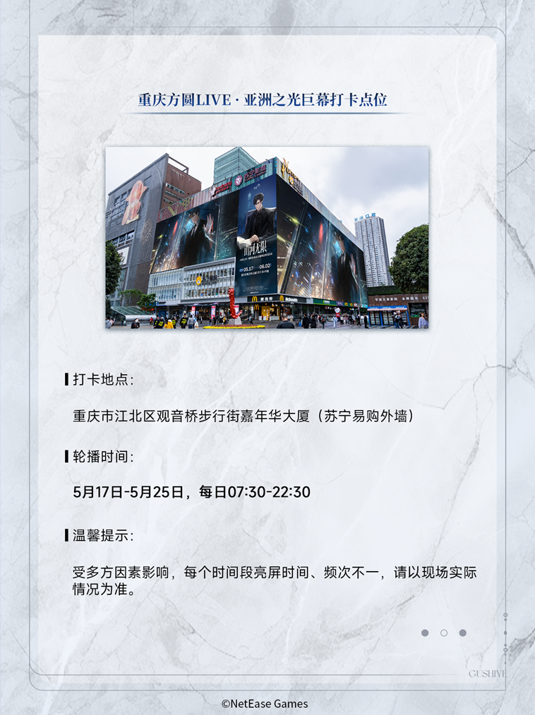 在5月17日-5月25日,每天7:30-22:30期间,重庆“亚洲第一大屏”即将开启主题海报限时轮播。(轮播亮屏时间、频次请以现场情况为准)
