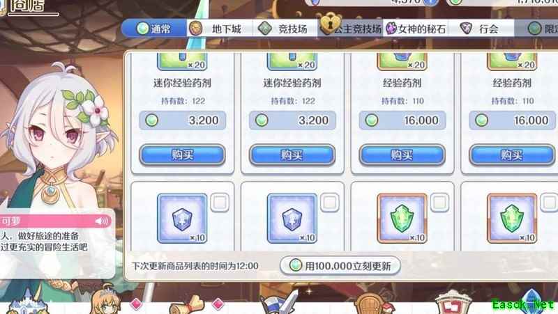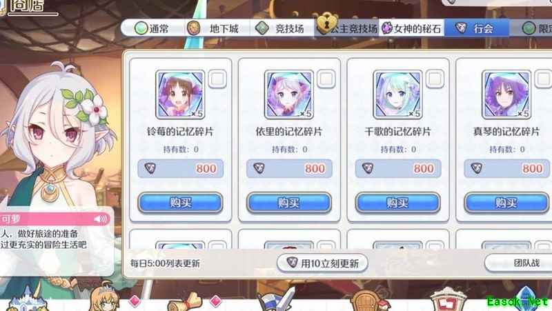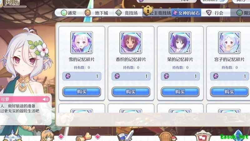这几种货币主要用于兑换角色碎片,据个人经验,它们是实现角色开花的关键资源。相比之下,用它们购买装备性价比不高。尽管女神秘石商店提供的碎片种类繁多,但价格偏高,若希望快速推进角色开花进程,更推荐关注以下几种商店。竞技场相关货币分为两种:单人竞技币和公主竞技币。单人竞技系统解锁较早,玩家通常很快就能使用;而公主竞技则需自行组建三人小队参与对战,这种模式对资源有限的玩家较为友好——即使缺少强力核心角色,也可通过提升整体队伍实力来取得进展。竞技场币通过在竞技场挂机时长累积获得;地下城币则需挑战地下城关卡获取,但请注意,地下城难度较大,建议充分准备后再尝试;战队币来源于活动期间的战队竞技玩法,积极参与可稳定获取。合理规划这些货币用途,有助于高效培养角色。
