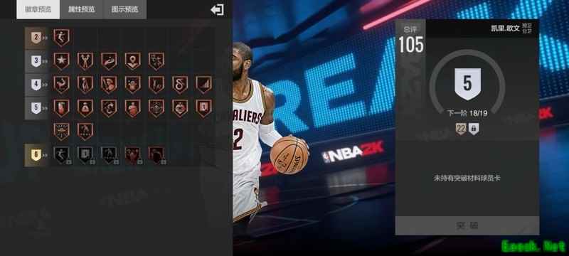 明确自身擅长的打法后,选择球员时应重点关注其徽章,这些徽章直观体现球员的优势与场上核心角色。以5突凯里·欧文为例,其徽章配置充分展现了他在实战中的技术特点与战术价值。