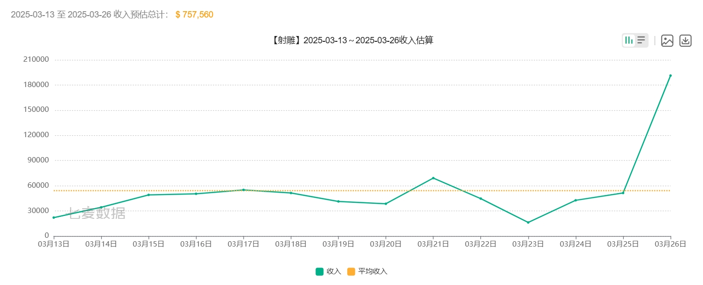 据七麦数据显示,3月13日~3月26日,《射雕》2.0版本iOS平台预估流水已达到约550万元人民币($757,560),尚有其他收入不在监测范围内以及未包含平台分成。从流水趋势来看,《射雕》2.0版本上线半个月仍处于发力期,这一成绩反映了游戏在初期上线阶段,获得了市场的积极反响,被玩家高度接纳。考虑到游戏的高品质与吸引力、网易的品牌影响力、市场推广策略等综合因素,《射雕》的后劲值得期待。