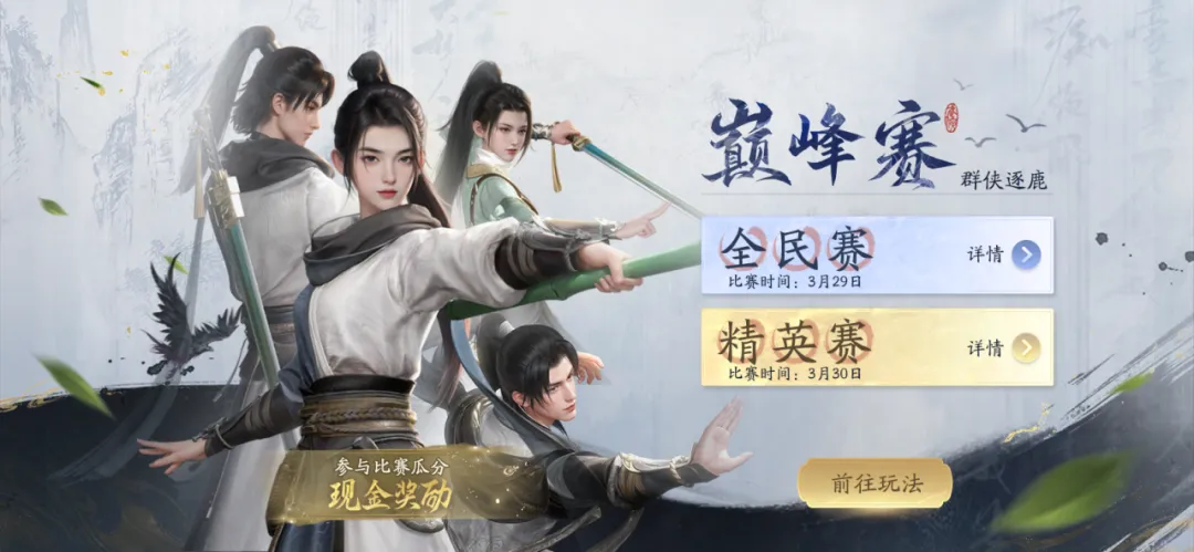 全民竞逐,问鼎巅峰!第一届“群侠逐鹿”巅峰赛将于3月29日~30日进行。比赛分为全民赛和精英赛,新号可零门槛参与比赛,瓜分总计20万的现金奖池,精英赛更有千元个人现金奖励等你来拿!比赛期间,官方抖音号将对赛事进行全程直播,同时游戏内也会有直播入口,供玩家前往观战。