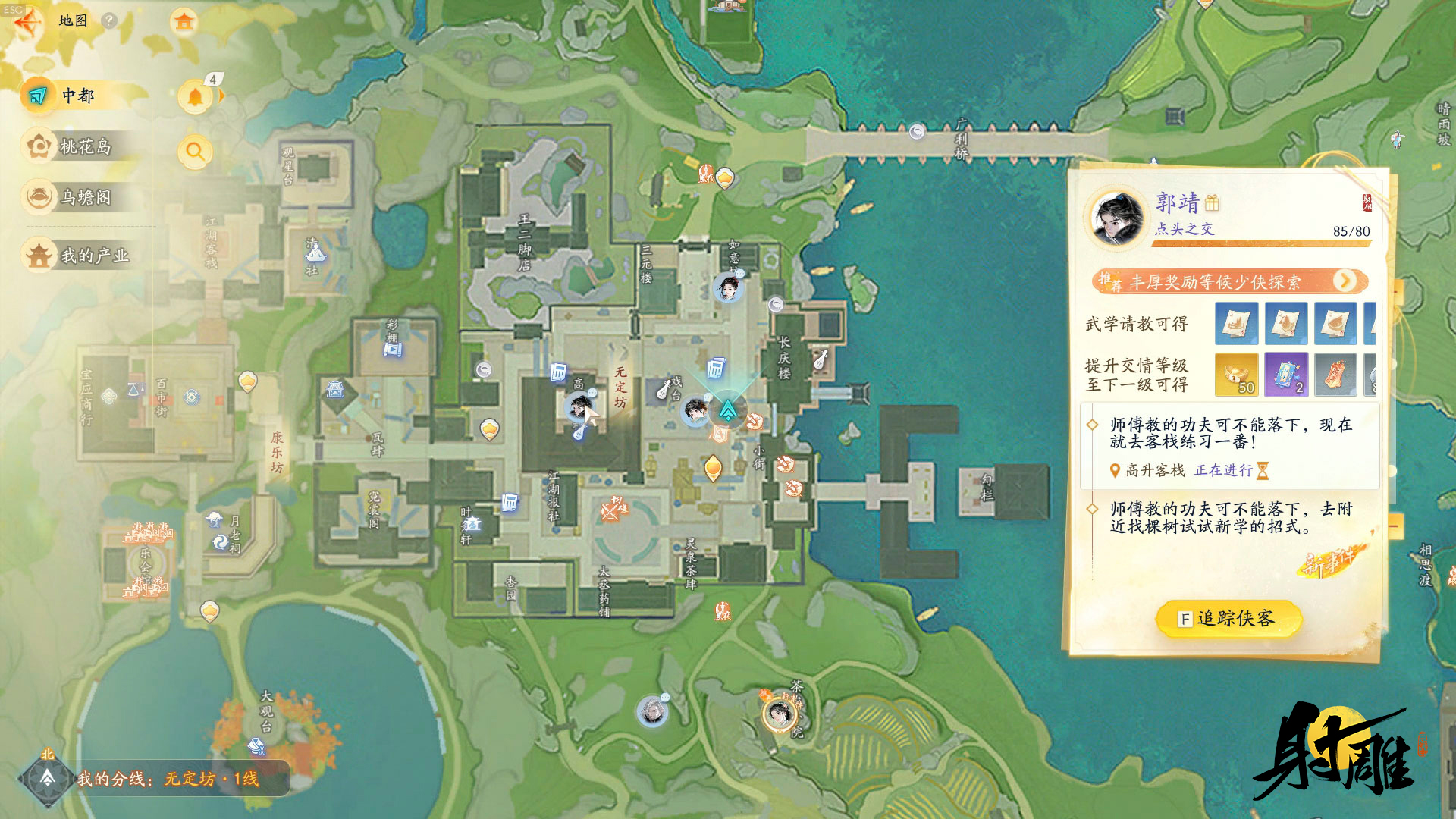 《射雕》希望能够塑造一个足够鲜活的江湖,第一步,就是让原著中的侠客们“活”过来。相比于传统游戏中纯站桩功能的NPC们,《射雕》项目组根据群侠们在原著中的背景与经历,为他们设计了一套能够自行运转的日常生活体系,他们会随着时间的流传,在不同时间去不同地点做不同的事情。