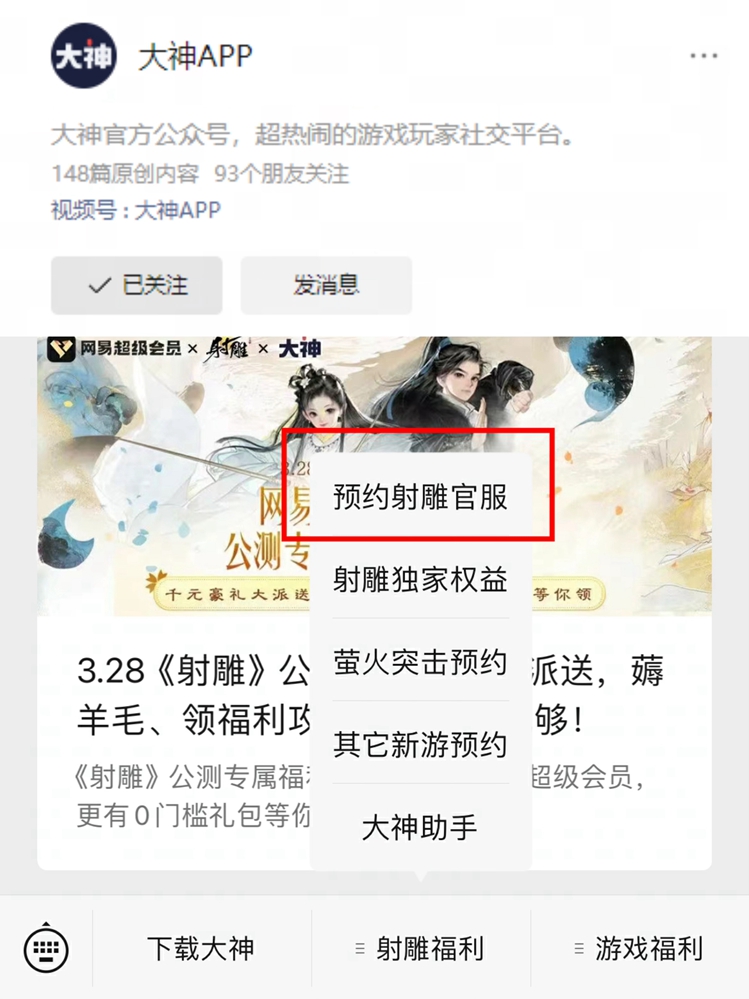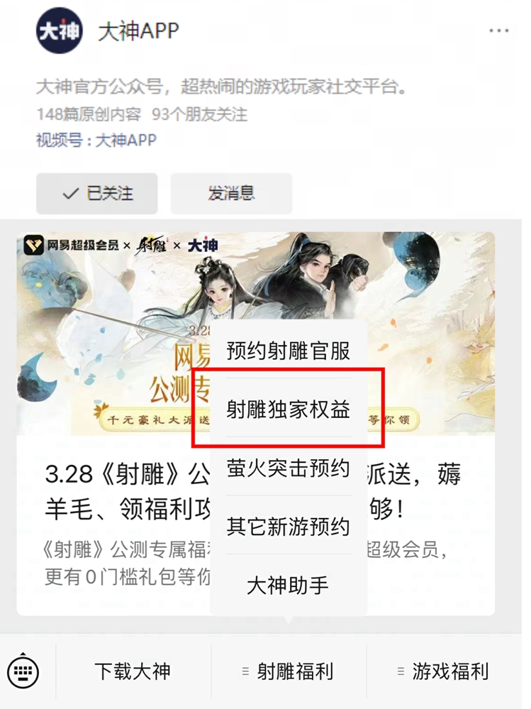 锁定大神《射雕》圈子,获取攻略情报&公测福利快人一步
