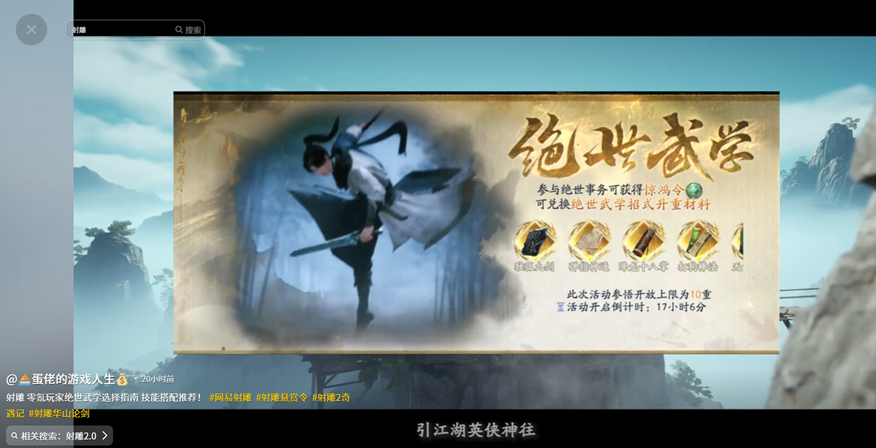 近日,网易《射雕》「绝世事务」活动重现江湖,绝世武学解锁至十重!活动开启后,讨论热度持续攀升,江湖风云再度掀起,海量福利拿到手软!