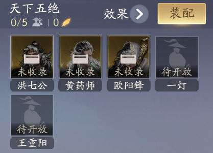 五绝组合 内劲 / 外劲攻击 + 0.5%,治疗强度 + 0.5% 内劲 / 外劲会心 + 1.5% 最大气血 + 3% 最终内劲 / 外劲 + 6%,最终治疗 + 6%