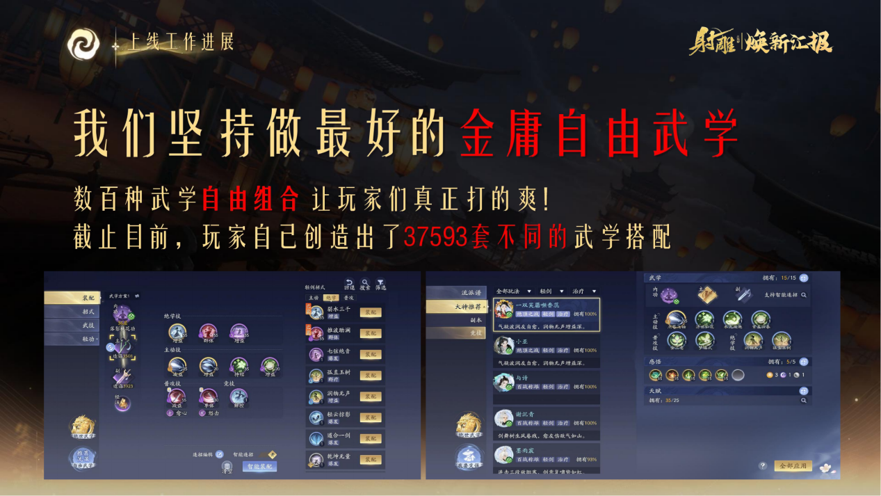 现在的《射雕》,创新的自由武学设定直接将武侠爽感拉满,没有“职业束缚”,只有 “什么招都能练,怎么打都可以” 的极致自由。据3月官方数据,凭借玩家们的智慧与创造力,射雕江湖中已有超3.7万套不同的武学搭配问世,展现了自由武学体系的深度与活力。