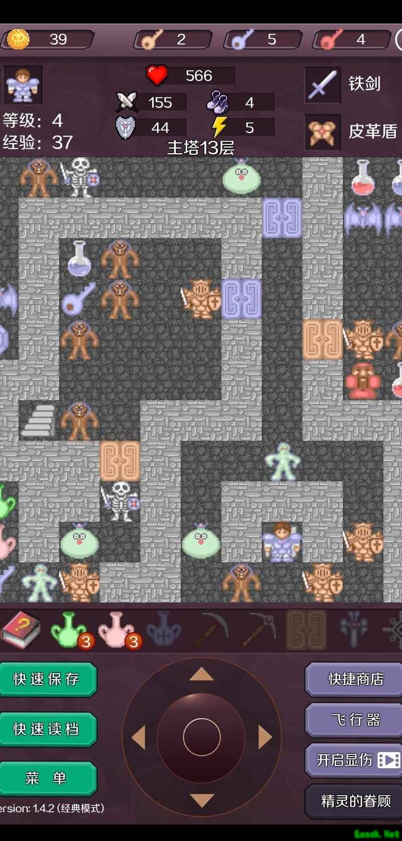 观看两个广告,开启显伤与飞行器功能。进入第一层,击败两只拦路怪物后打开蓝色门,击杀绿球获取红蓝宝石。继续前进,消灭三只拦路怪抵达第二层,击败红球开启红门和黄门,再次收集红蓝宝石。击败两只绿球后进入第三层,打开蓝门,清除小蝙蝠前往第四层,击杀魔法师获得铁剑。原地使用飞行器返回第三层,击杀一只绿球和一只红球,购买攻击力提升。再次用飞行器回到第四层,击败三只拦路怪,取得小飞羽。