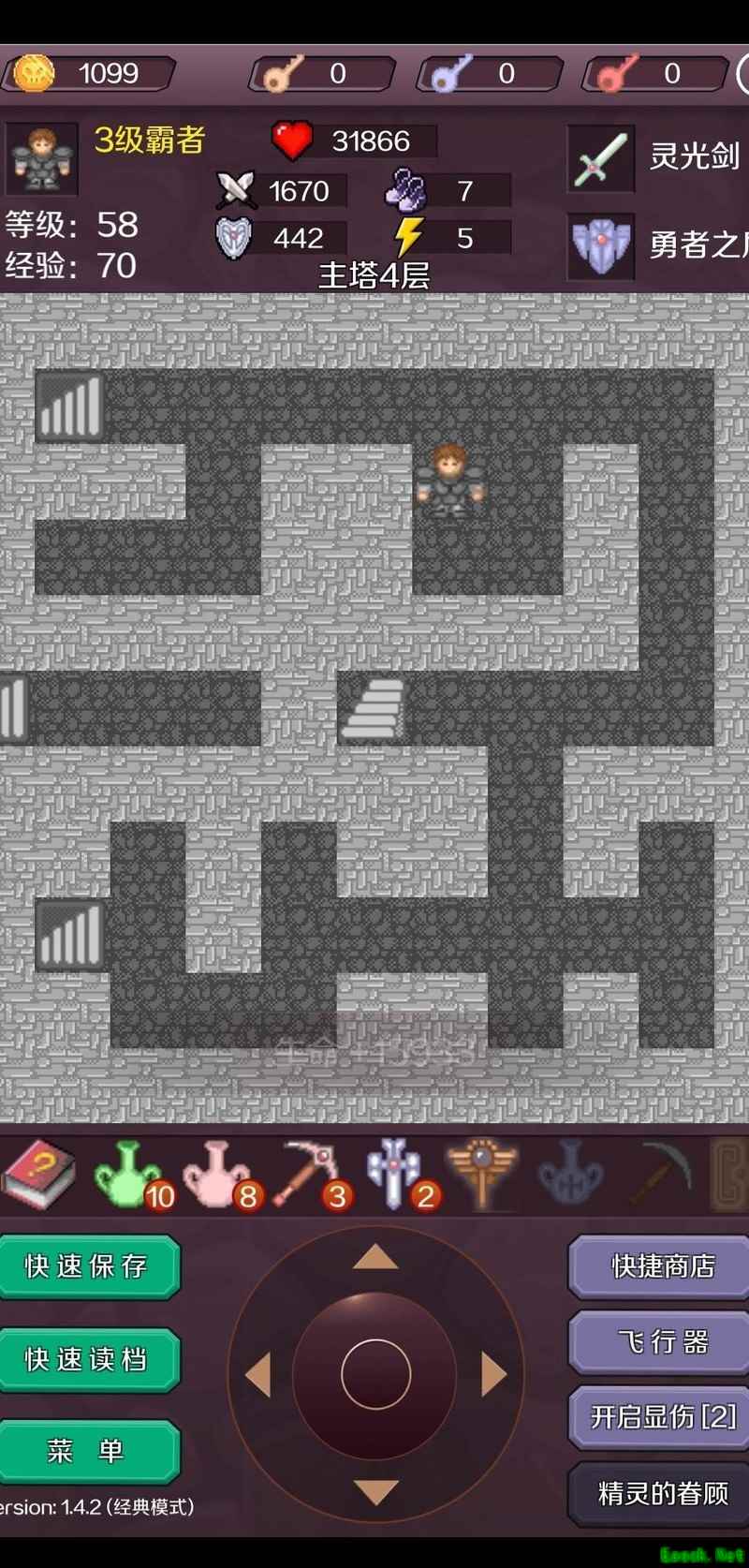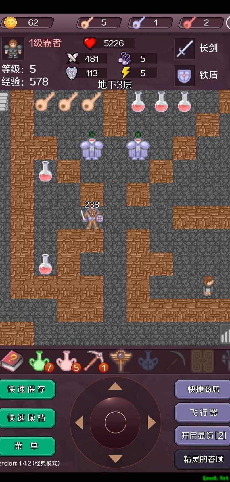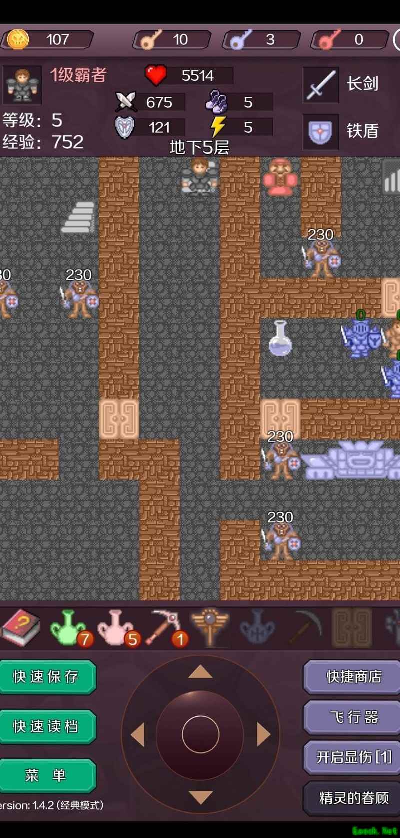 在B22层击败铁怪获取红钥匙,进入密室取得勇者之剑,将攻击力提升至1945,无伤消灭全部毒丧尸与白银人,连升三级达到77级,随后前往B24层。
