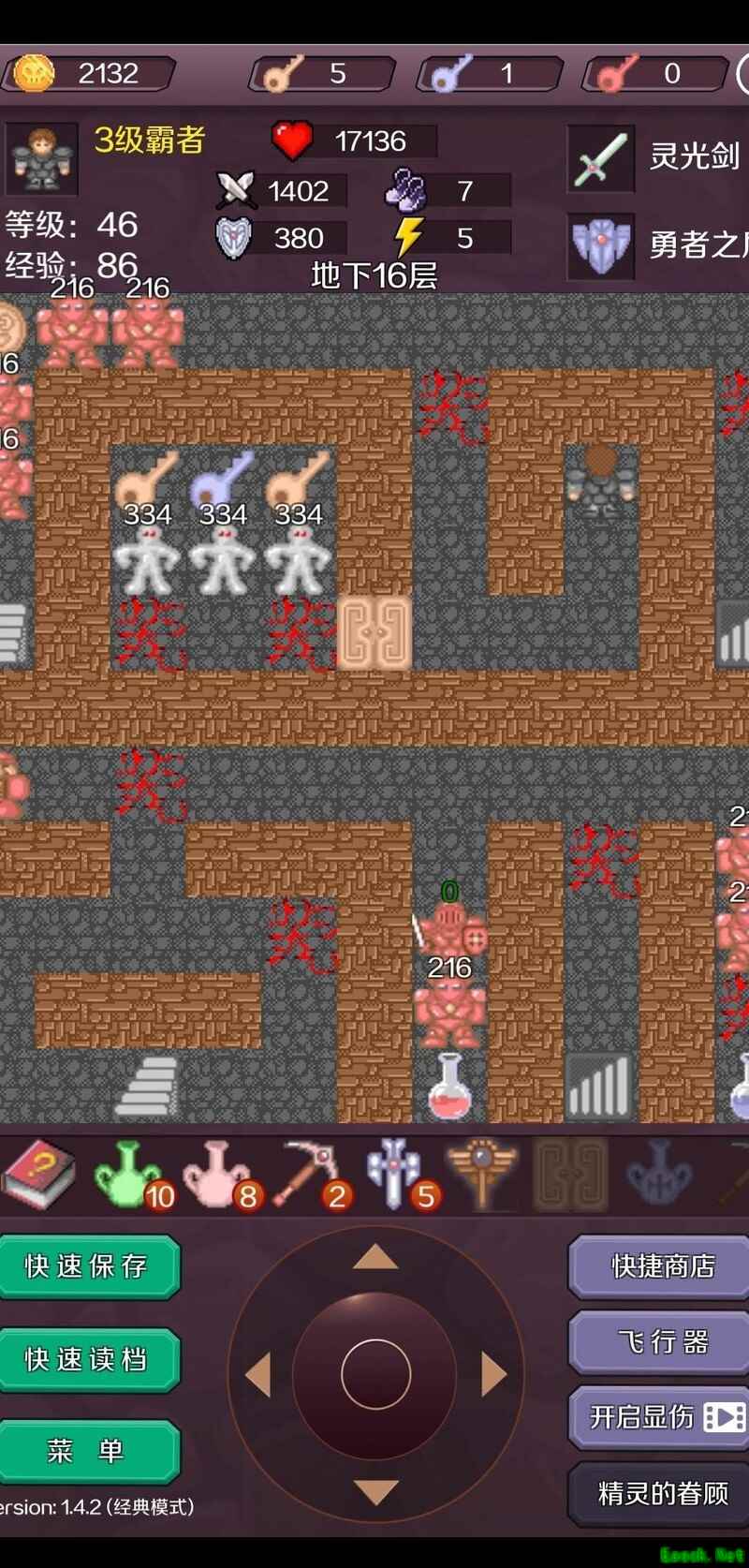 出售五把红钥匙,将攻击力提升至284,清理各层可无伤应对的小怪(注意第4层和第7层的黄门不可开启)。再售出两把红钥匙,将攻击力升至340,继续清理可无伤击败的敌人,随后提升攻击至348,返回16层。
