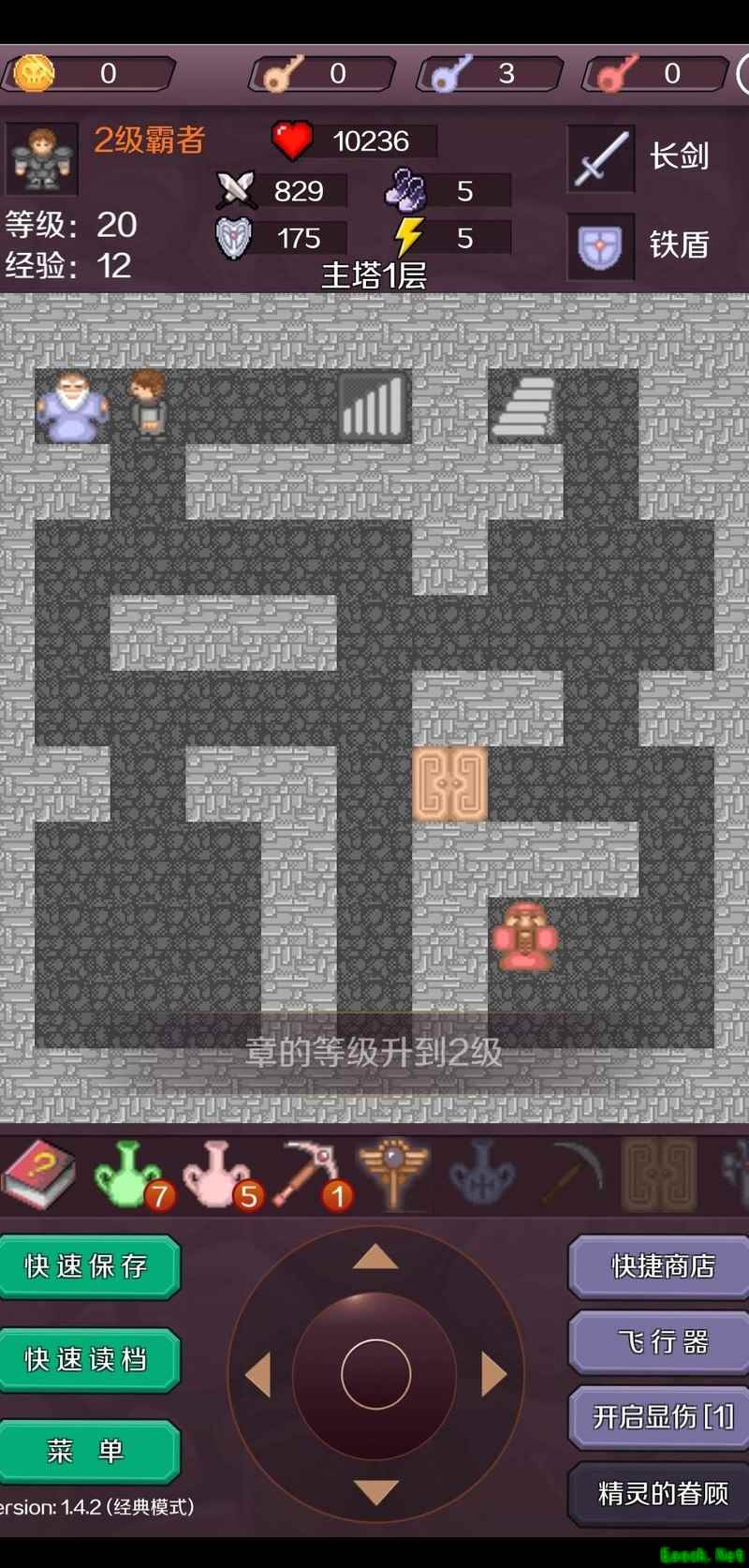 登上20层,击败假公主获取宝石,返回2层寻找小偷,开启通往下方的通道。抵达B2层后,打开左右任一黄门,与小魔仙对话取得魔法之匙。前往15层,开启红门击杀章鱼,沿通道进入17层密室。逐层清理可安全应对的小怪,将攻击力提升至437,进入密室第五层,取走中央的霸者章,直面倒影挑战。