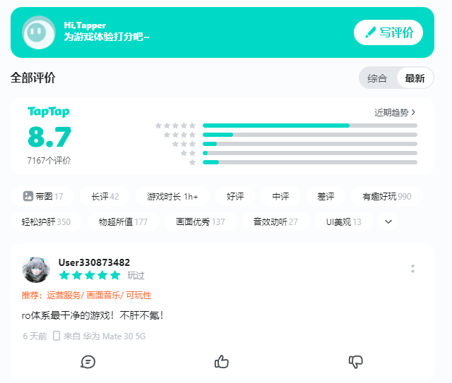轻量化的操作和独到的画风,再加上背后的仙境传说RO IP加持,让其不但国内爆火,在海外市场的各个榜单也都取得一席之地。玩家们的赞不绝口,是真正成为叫好又叫座的现象级游戏,实现口碑与收益两开花。