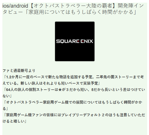 《歧路旅人》在主机平台上会有新动作,但是还需要大家等待一段时间;