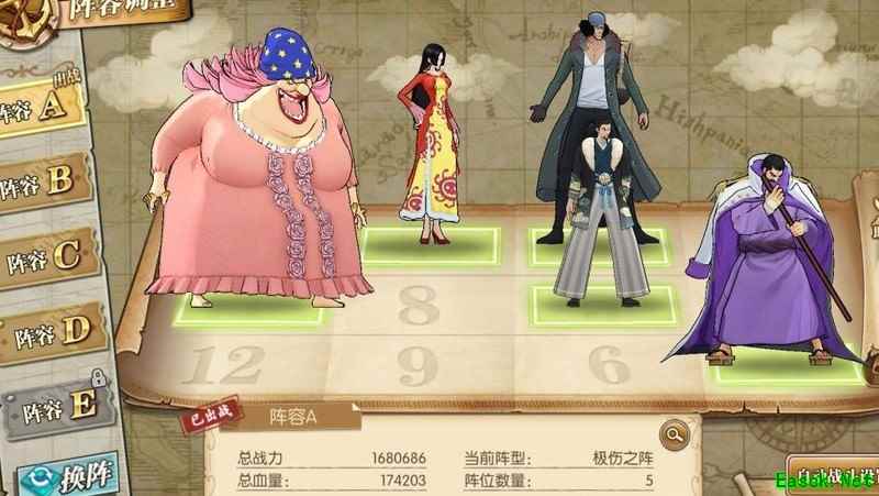由于SSR新世界路飞在当前版本中相比新世界库赞、大妈等一线输出和坦克角色表现较弱,实战出场机会较少。若执意搭配路飞使用,唯有依靠高练度的推进城汉库珂,配合路飞的送死流套路,才能实现较为特殊的娱乐玩法组合。