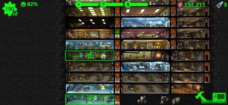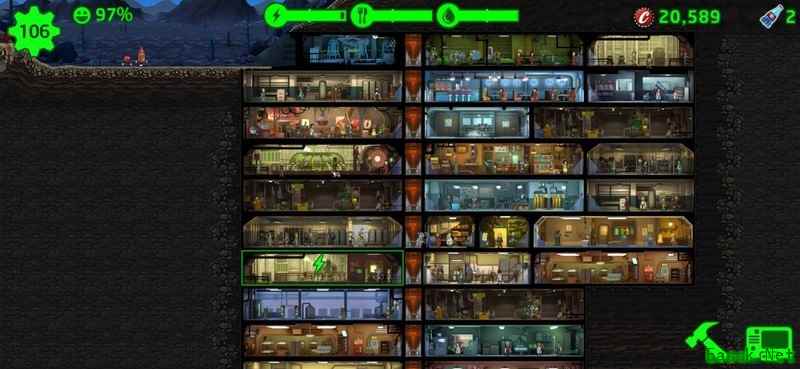 一餐厅配一花园,一水房加一大水房,拆除发电厂改建两座核电厂,广播站升满级,六十五人口时武器房达三级,八十人口时装备房三级并开启传奇制造,配备两医疗室与一科学室,另设一间三格阿斯克勒庇俄斯训练室。