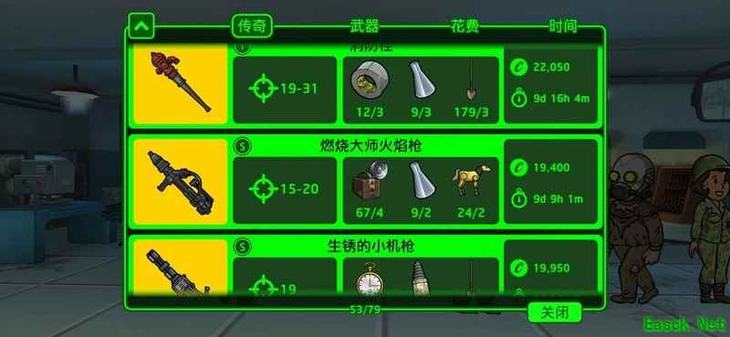 像我这样全属性点满的,去一趟废土基本就能从1级直升50级。升级其实不难,真正稀缺的是后期需要的金色材料。玩具车、风扇、棒球手套这些都可以出售换取资源,我们只需保留等离子步枪所需的铲子、显微镜和时钟,提前为每人配备一把武器,备战61人口后出现的死爪。