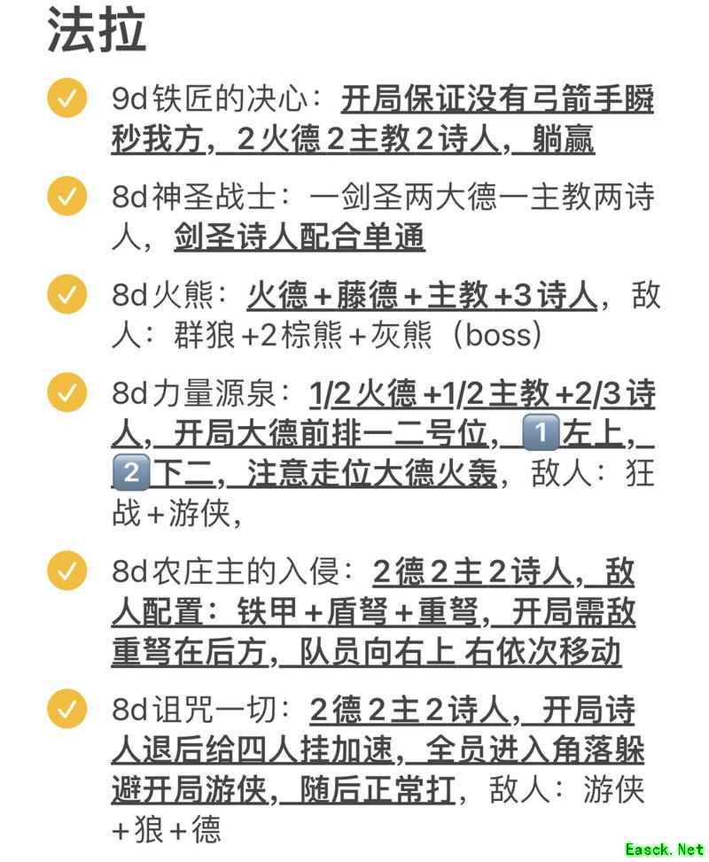 在尚未获得精灵血统前,可多去酒馆寻找合适人选:大德鲁伊建议选b感c意以上,主教需c意c感以上,诗人则选c敏b感以上。前期法师队伍配置推荐为:2名大德鲁伊(携带自然之火)+2名主教(搭配2激励或1激励加1狂热)+2名诗人(使用飞鹰技能)。这套阵容在战斗中能轻松应对许多8盾、9盾任务,只需稍加走位即可。以下是我用这套配置完成法拉翠亭任务时积累的一些小技巧。