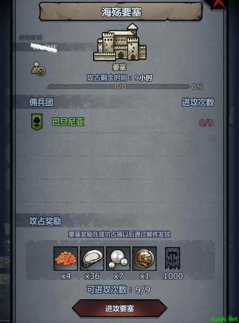白色标记区域显示的是其他玩家的要塞密码,点击加入要塞并输入正确密码即可参与。每个要塞最多可容纳四人,意味着一位高手可以带领三人共同作战。进攻次数充足,可多次尝试挑战,但会消耗月份数量。有时战斗失败可能是由于走位不当所致。