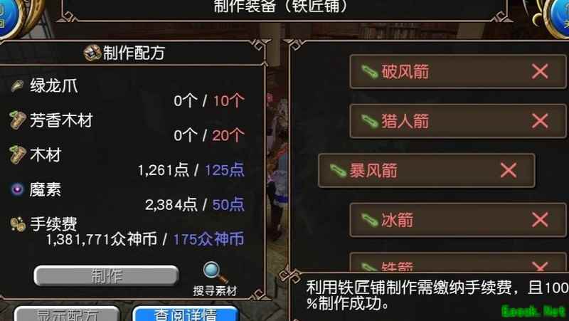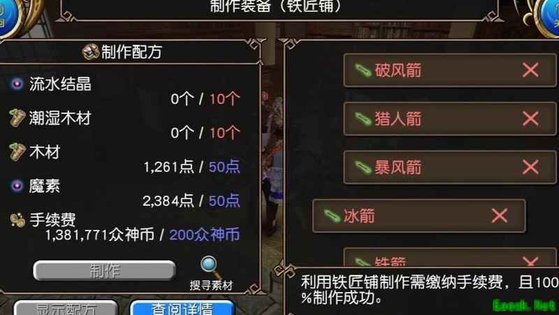 风属性箭可通过击败弗雷帝亚有几率获得,也可在铁匠铺自行制作。王掉落的版本比铁匠铺多一项命中属性,玩家可根据自身需求选择获取方式。