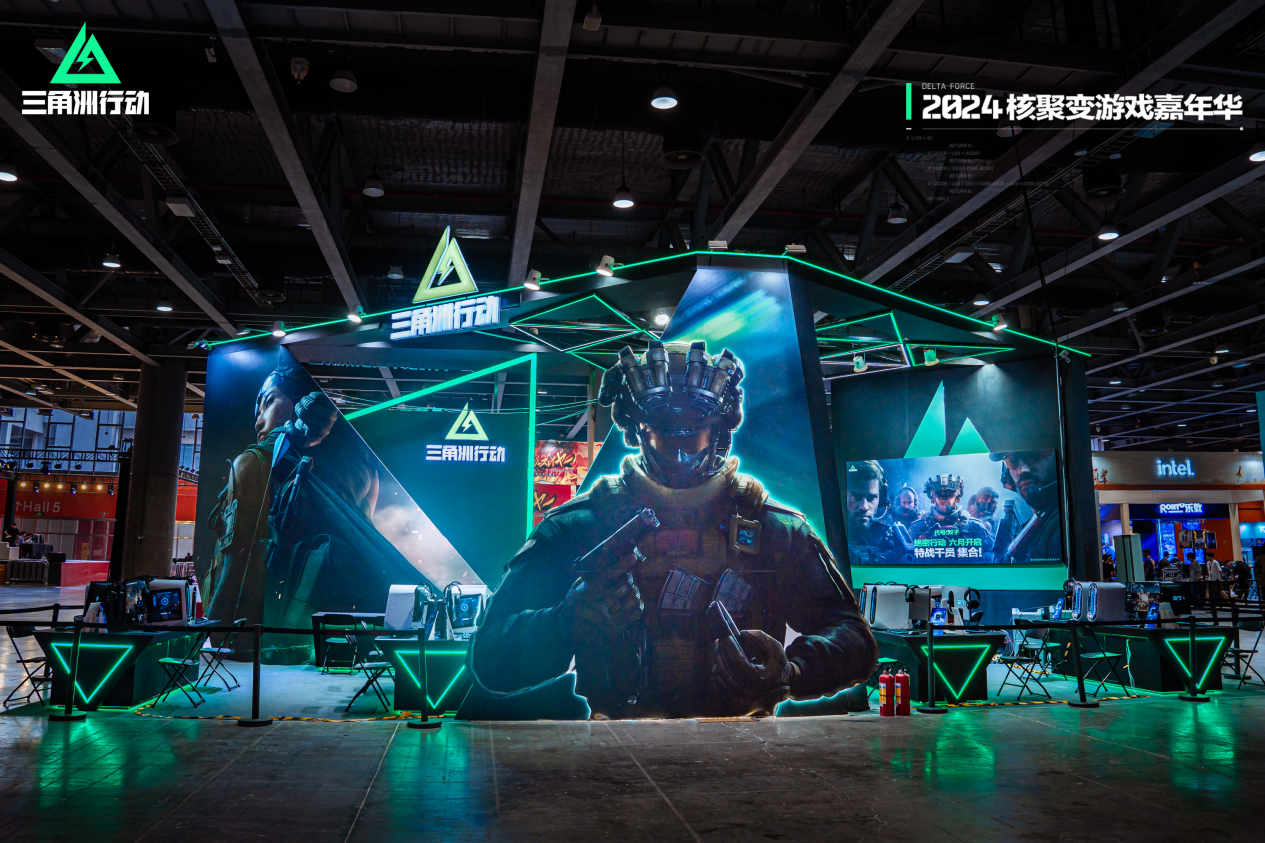 核聚变游戏嘉年华现场,《三角洲行动》的展区布置得非常用心。大屏幕上轮播的战斗画面以及高精度的游戏画面,吸引了无数玩家驻足观看。