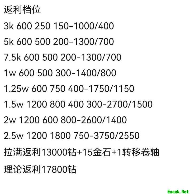 节日返利等级档位