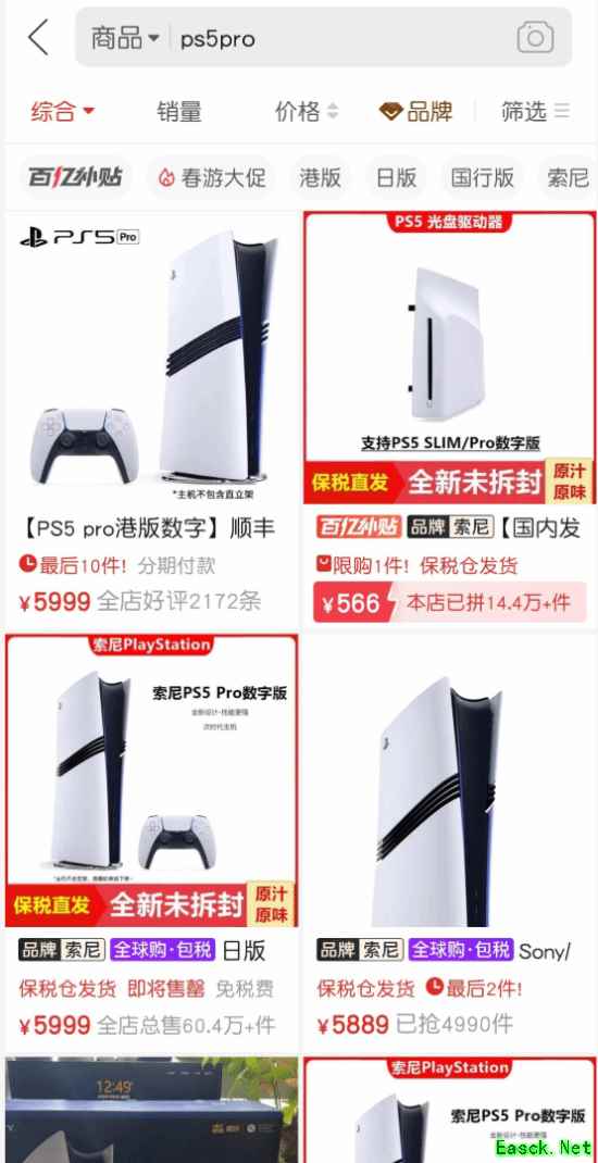 目前在电商平台拼多多搜索 PS5 Pro 发现,大量现货定价已直接跳回 5,999元 甚至更高,原本的“捡漏”空间被迅速压缩。
