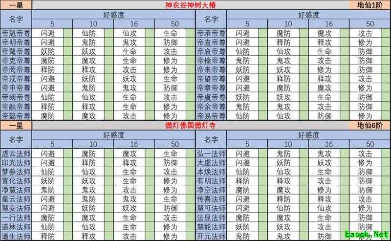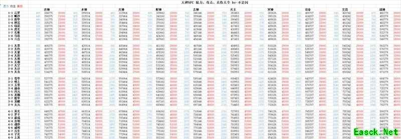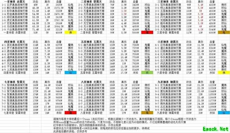 神界NPC天尊的攻击力,参考宿水大佬制作的图表。