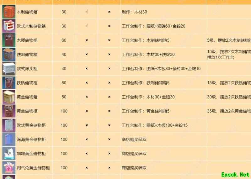 40级时可在工作台的设置-储物设施中制作,所需材料为木材200个和水晶200个,水晶可通过挖掘水晶矿并在魔法熔炉中熔炼获得。