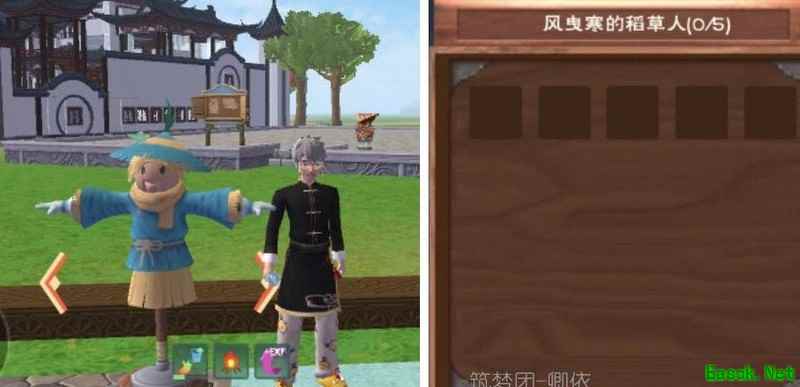 稻草人由40木材、2牛筋和50茅草制成,具备储物功能,容量为5。在混战服中可放入弓箭头,当敌对玩家靠近时,会自动持续射击,有效防御不怀好意的侵扰者。