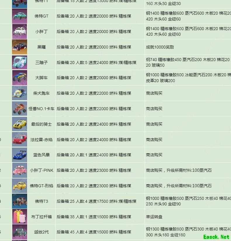 载具设施除商店购买和成就获取外,其余均需在载具工作台制作,消耗材料为50蒸汽石与50钢。