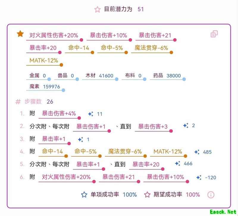 衣服:提升x属性20%、爆伤10%、爆伤21、暴击20。(压钉机、兔麻糬)