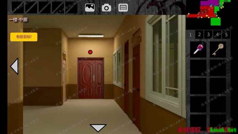 回到一楼中廊,进入图示位置后点击左侧走廊(勿点白色箭头),即可看见大门。使用开启大门,触发新手结局。