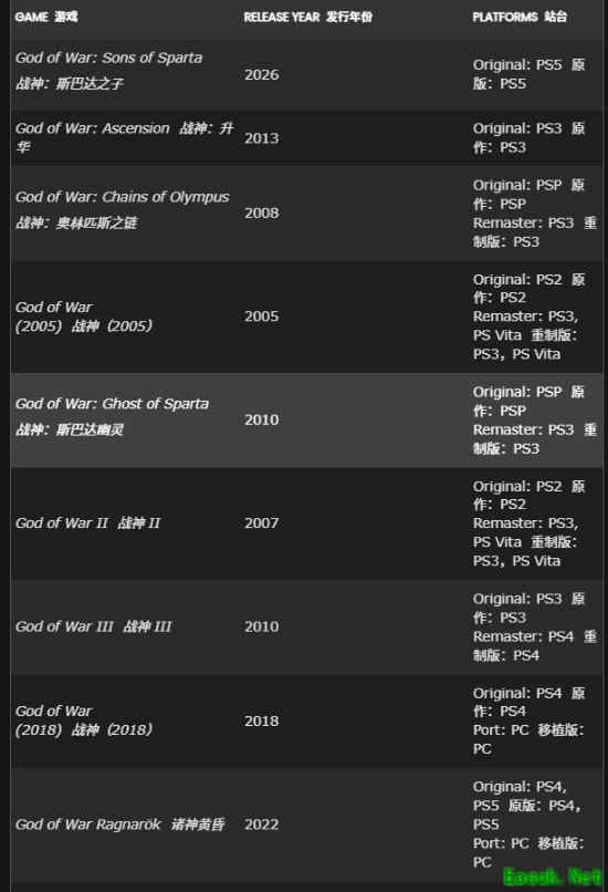 一是《战神》(2005年),Metacritic评分94分,登陆PS2、PS3、PSVita平台,首次引入奎托斯角色,设定其与阿瑞斯(Ares)签订黑暗契约后寻求救赎,需斩杀战神阿瑞斯,同时推出固定视角和链刃战斗系统;