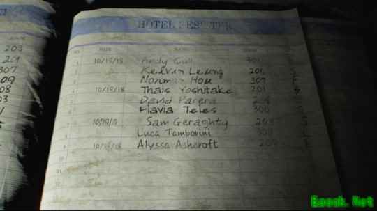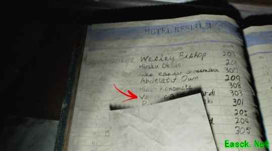 在《生化危机:安魂曲》最新更新加入拍照模式后,玩家于游戏内的鹪木旅馆登记簿上,通过放大观察辨认出一位名为“维罗妮卡”的住客记录。值得注意的是,该住客的房间号为303——由于《生化危机:代号维罗妮卡》在系列时间线上紧随《生化危机2》之后,相当一部分玩家将其视为系列真正的第三部正统作品。此外,登记簿信息还显示,另一位住客阿莉莎不仅是最后一位入住者,其记录序号为“第九位”,这一数字也与该作的序号形成呼应。
