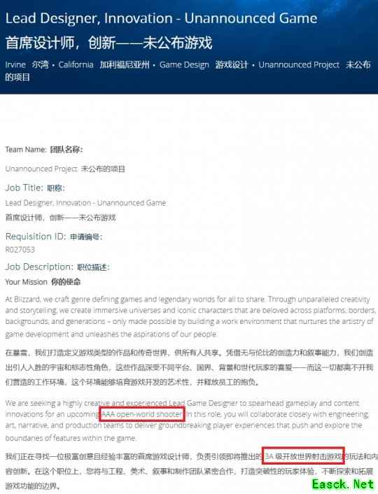 暴雪娱乐近日发布的一则招聘信息引发广泛关注。根据官方职位描述,该公司正在为一款尚未公布的“AAA级开放世界射击游戏”寻找“创新首席设计师”,并要求应聘者具备虚幻引擎开发经验——这将是暴雪旗下首款采用外部引擎打造的核心产品。
