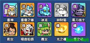 核心英雄包括:招财猫、蛋刀战士和雷神。
