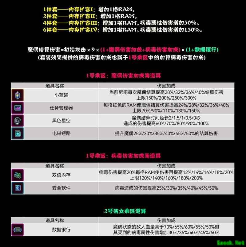毒属性伤害增强效果,如、、内存扩容套装等。