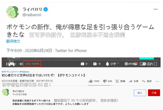 说《宝可梦大集结》为今年全球的“网红产品”一点也不夸张。大量“宝可梦”圈、游戏圈的KOL纷纷化身“自来水”加入游戏直播和视频创作大军中,共同成就了当前《宝可梦大集结》在Twitch、YouTube等社交媒体平台上的热度。这里面就包括了Twitch全球粉丝量排名第三、YouTube亦有千万粉丝的西班牙顶级“网红”——Rubius。在过去的直播和视频创作当中,Rubius 在游戏方面的喜好可谓相当广泛,从炙手可热的MC、《堡垒之夜》到各类独立游戏都有所涉猎。而《宝可梦大集结》上线当天,Rubius持续体验数个小时且赞不绝口,对游戏的评价非常正面。