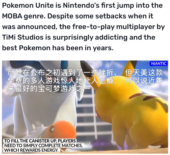 为Destructoid和Polygon等媒体供稿的知名游戏撰稿人Eric Van Allen也发文调侃,“宝可梦把朋友都‘骗’去玩MOBA了”。